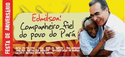 A comemoração do aniversário do Edmilson será no domingo, 29, numa grande festa popular na sede do Rancho Não Posso Me Amofiná, no bairro do Jurunas, em Belém.